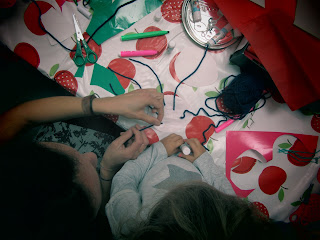 La sua storia è stata raccontata con un piccolo teatrino colorato e tutti i bambini sono stati avvolti dai fili colorati delle ragnatele. Ognuno di loro ha dato casa a nuovi ragnetti creativi creando intrecci di fili e stoffe.